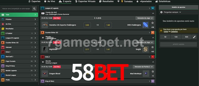 O 58Bet oferece uma grande seleção de opções de apostas em e-sports com probabilidades competitivas